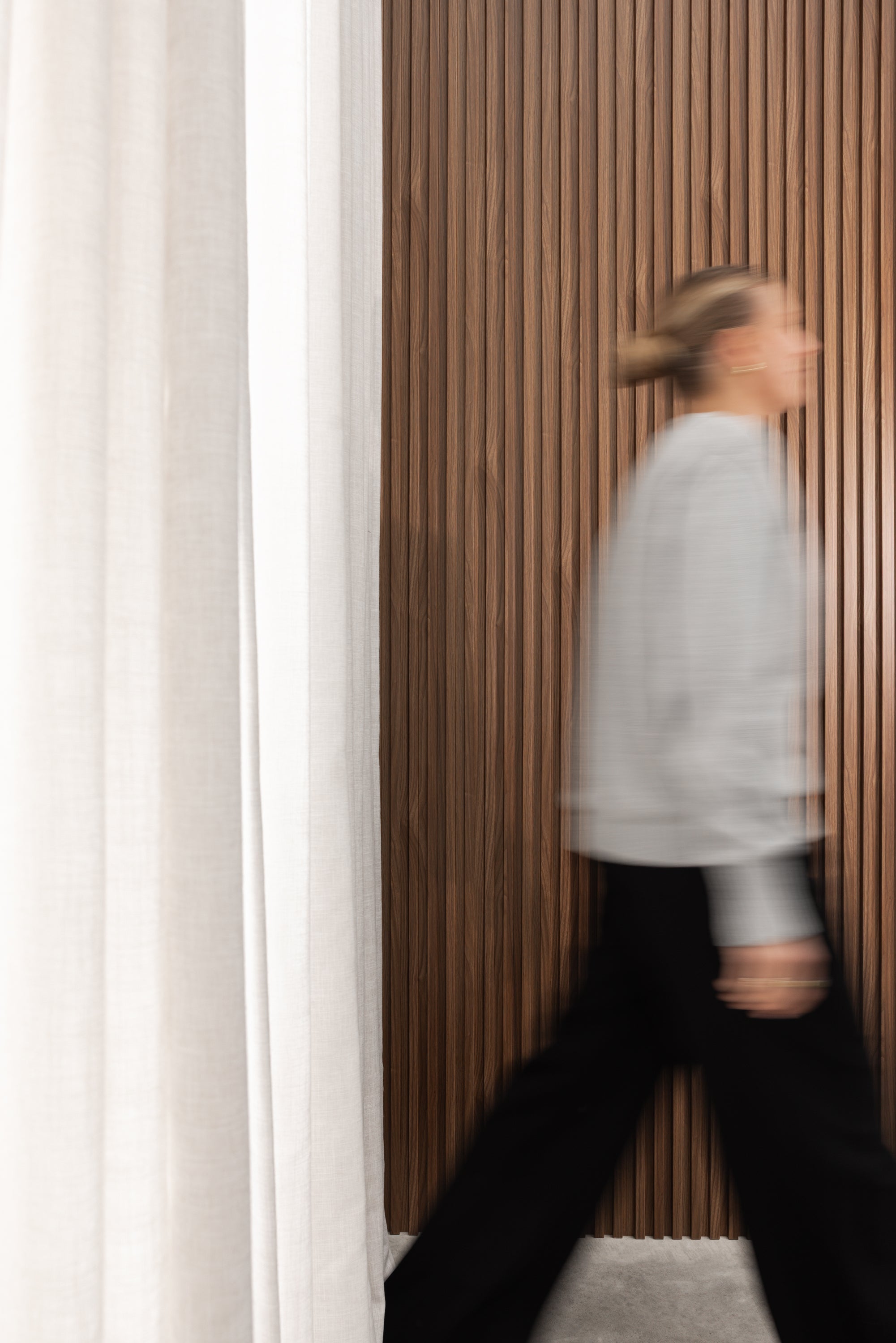 With a bolder, evenly spaced profile, Batten 20 in Walnut adds a grounded, architectural feel to any space. Its rich, ashy woodgrain and 20mm ridges create visual depth while maintaining a sleek, contemporary look — ideal for both residential and commercial applications.