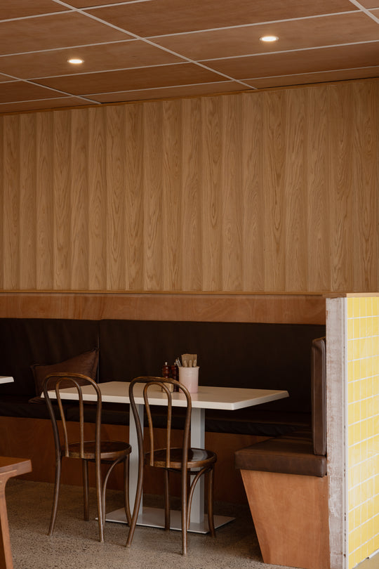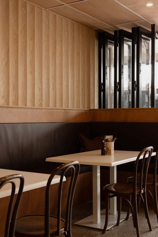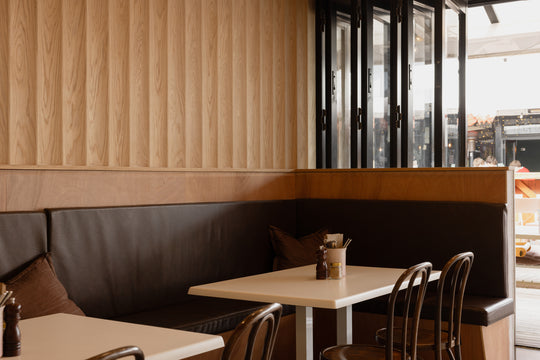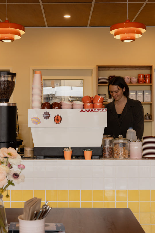A bold, playful café interior in Mount Maunganui, featuring quirky details, vibrant colours, and a family-friendly brunch atmosphere.