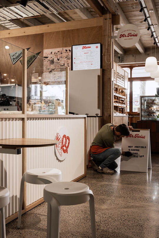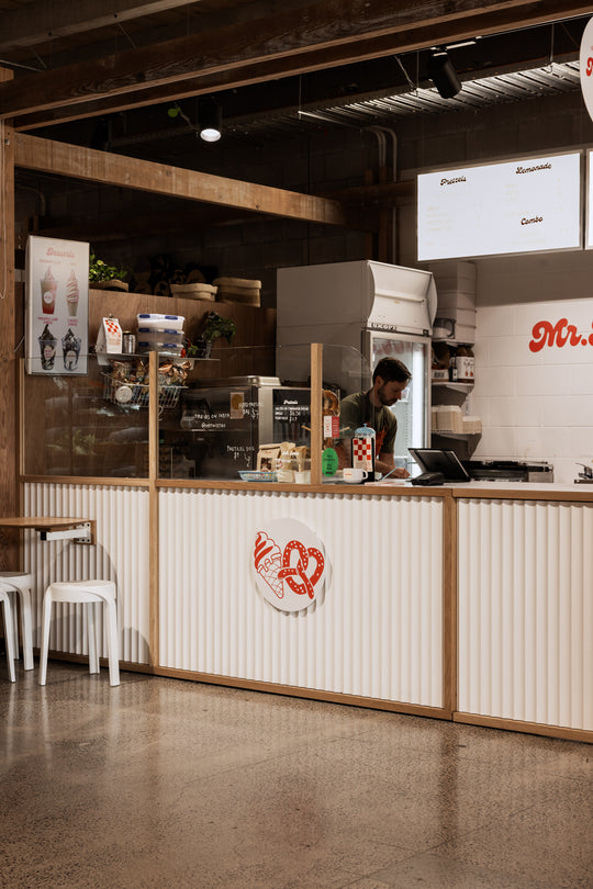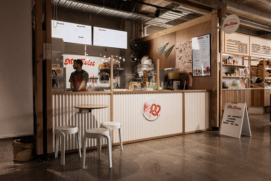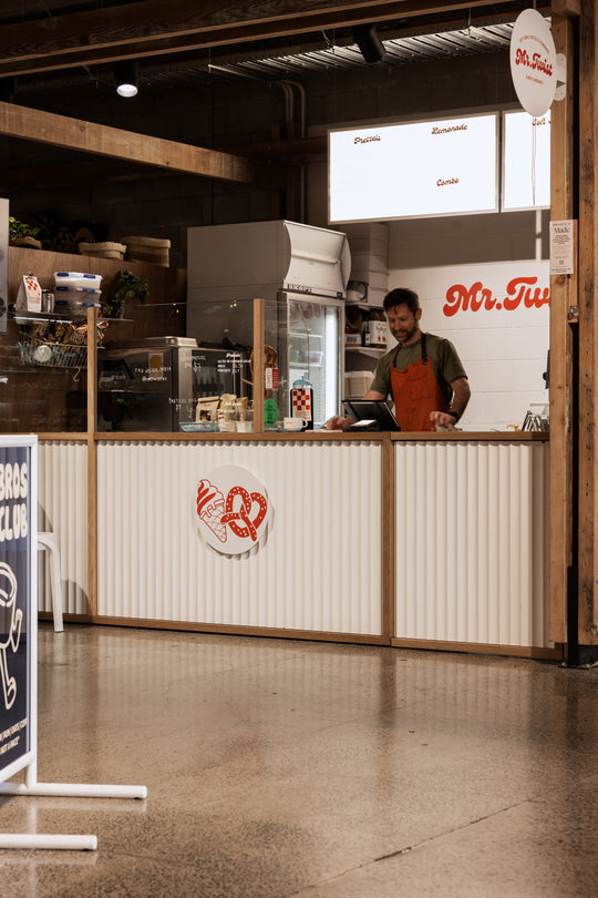 A playful food stall fit-out designed to reflect Mr. Twist’s joyful brand, creating an inviting spot for feel-good treats in the heart of the MADE Market.